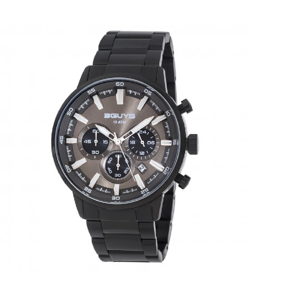 3Guys Men's Chronograph Watch Black Stainless Steel Bracelet 3G27005