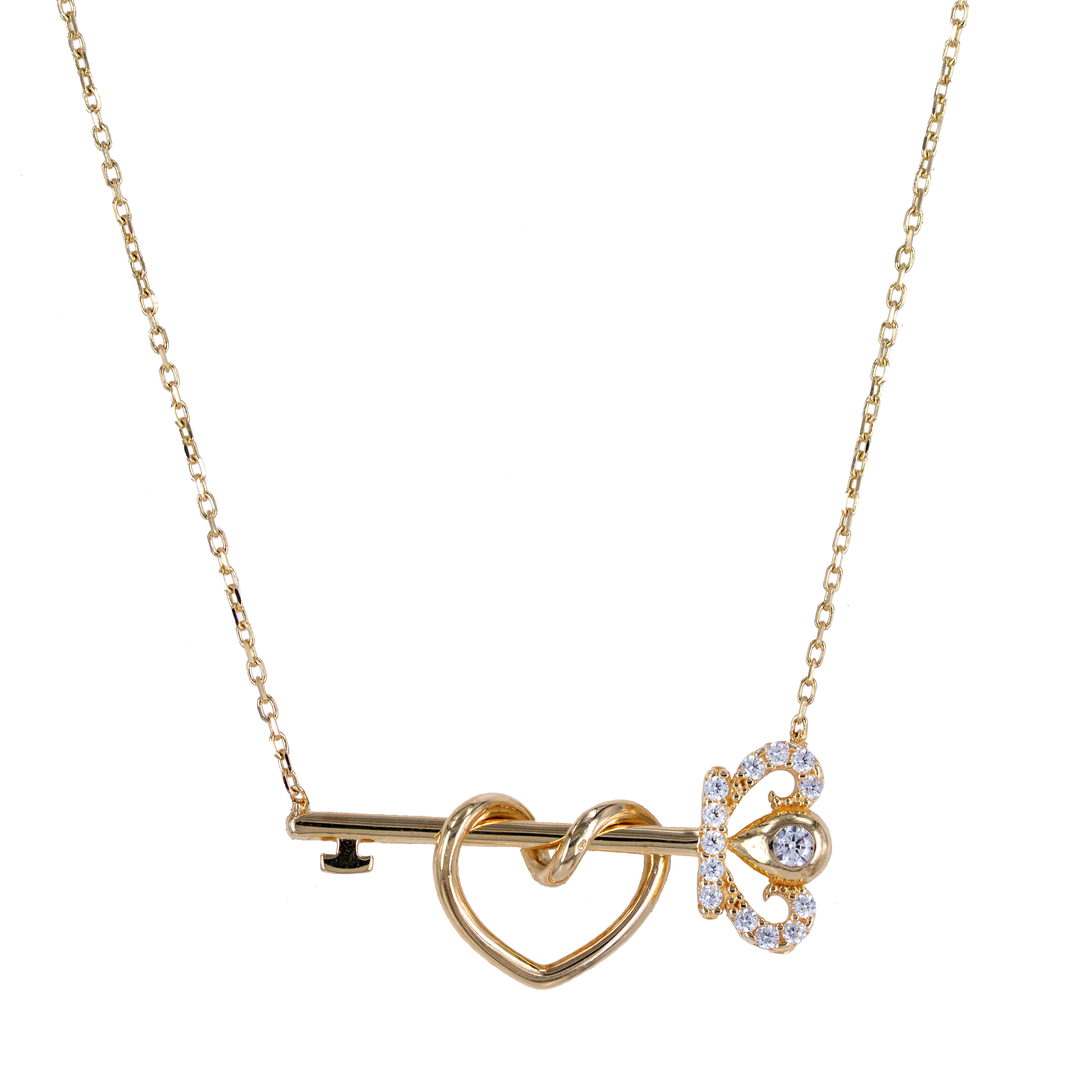 Χρυσό Κολιέ 14 Καρατίων Σχέδιο Κλειδί με κορώνα και Καρδιά 46120-2ELE