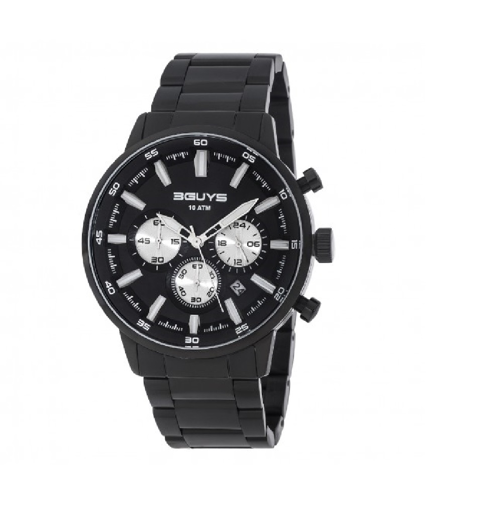 3Guys Men's Chronograph Watch Black Stainless Steel Bracelet 3G27001