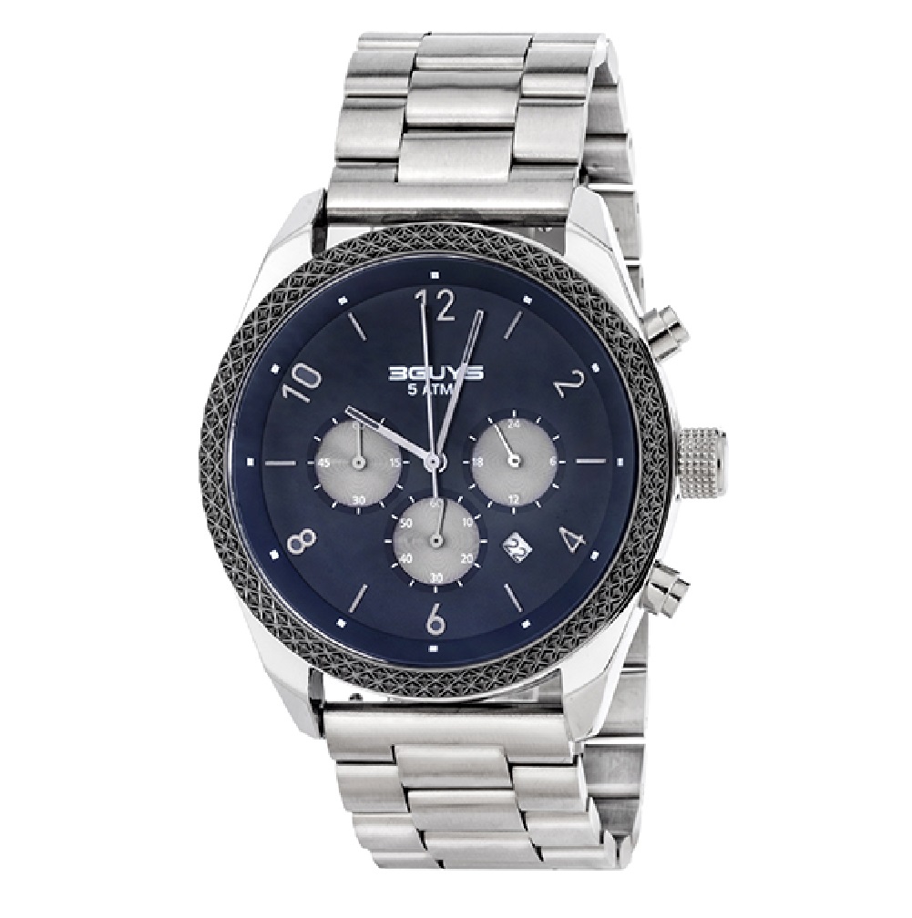 3Guys Men's Chronograph Watch Silver Stainless Steel Bracelet 3G25023