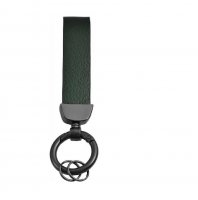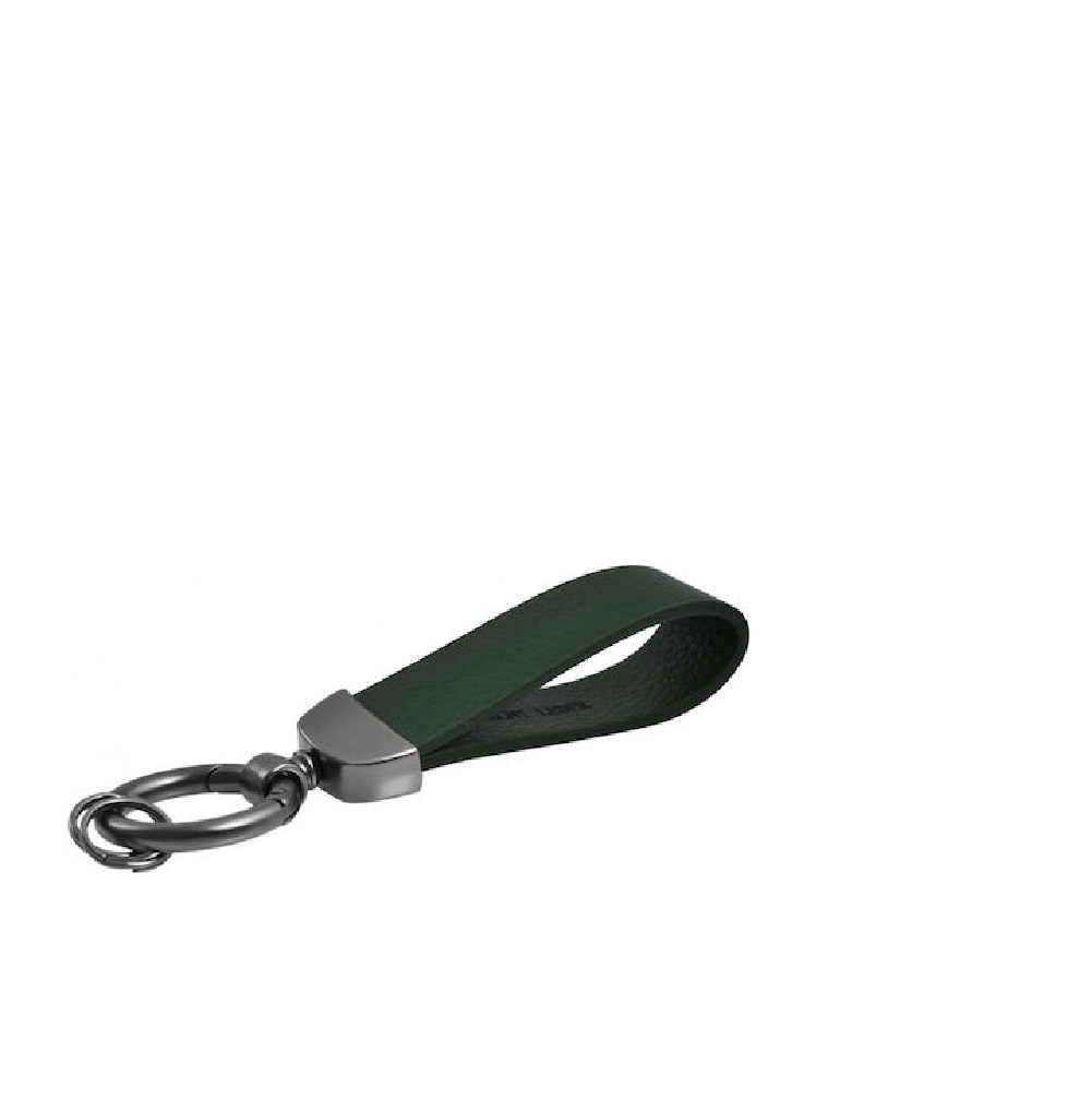 Ατσάλινο unisex μπρελόκ, σε γκρι ανοξείδωτο ατσάλι και πράσινο σκούρο γνήσιο δέρμα.