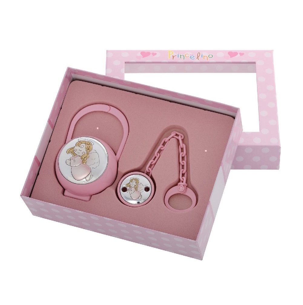 Ασημένιο Παιδικό σετ με Πιπιλοθήκη Αγγελάκια Prince Silvero 9040-MA/SG002-R