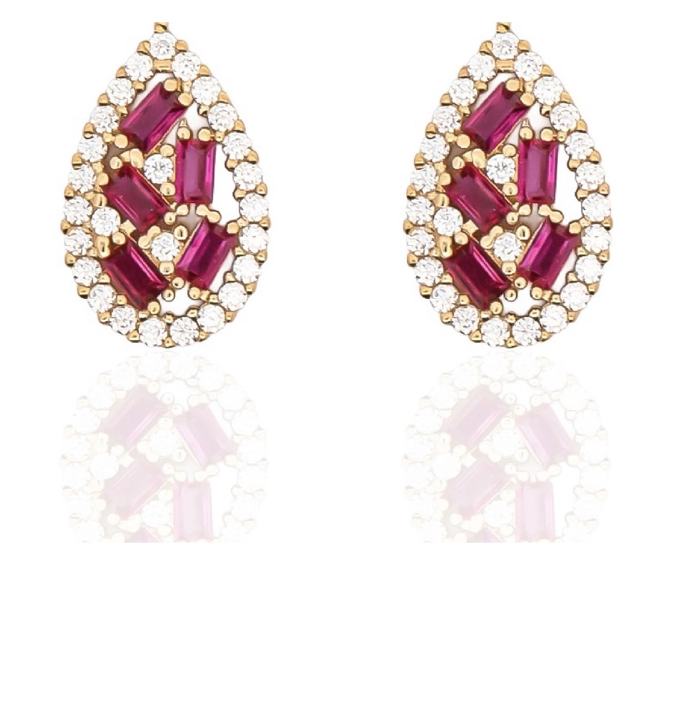 Χρυσά Σκουλαρίκια 14 Καράτια με Ρουμπίνια και Ζαφείρια 44170-24197YMET