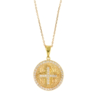 Ασημένιο κολιε 925, επιχρυσωμένο, με μοτίφ κωνσταντινάτο διπλής όψεως με λευκές πέτρες.