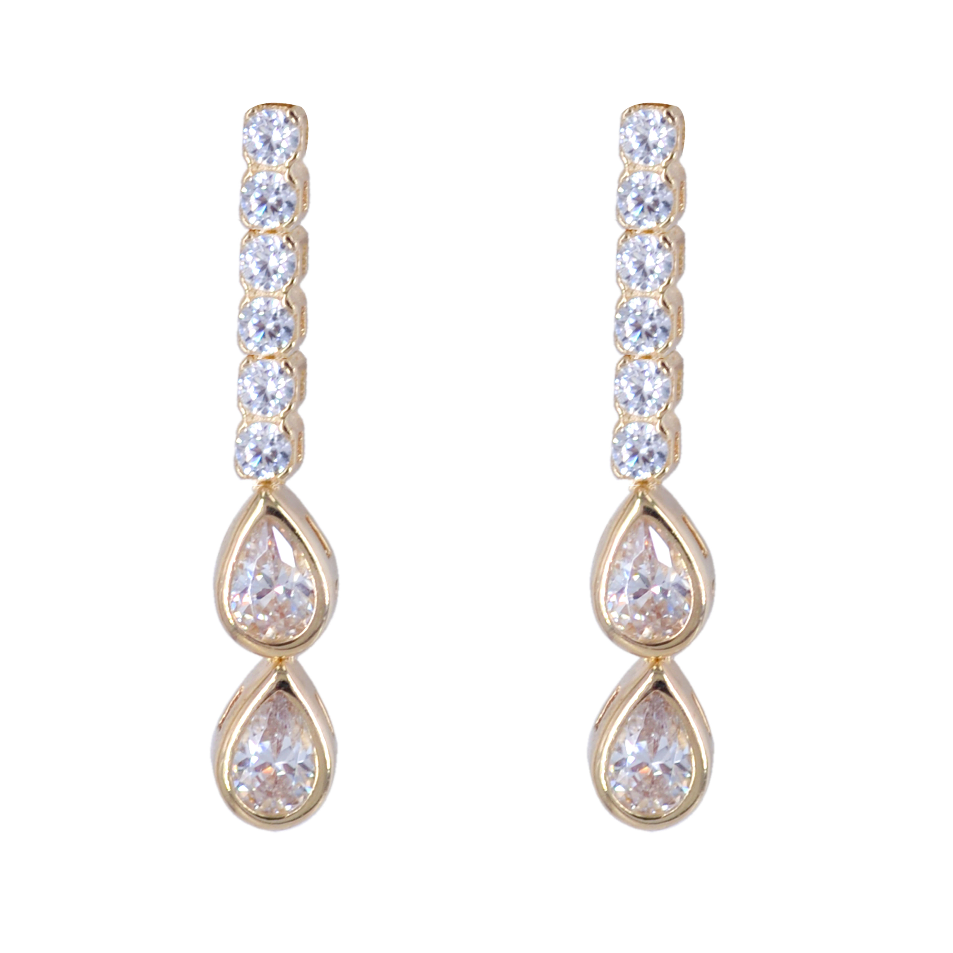 Σετ χρυσό 14 Καρατίων,  με ιδιαίτερο μοντέρνο σχέδιο από μονή σειρά με ζιργκόν Swarovski η οποία συνεχίζει με σειρά πετρών σε σχέδιο δάκρυ ζιργκόν Swarovski.
