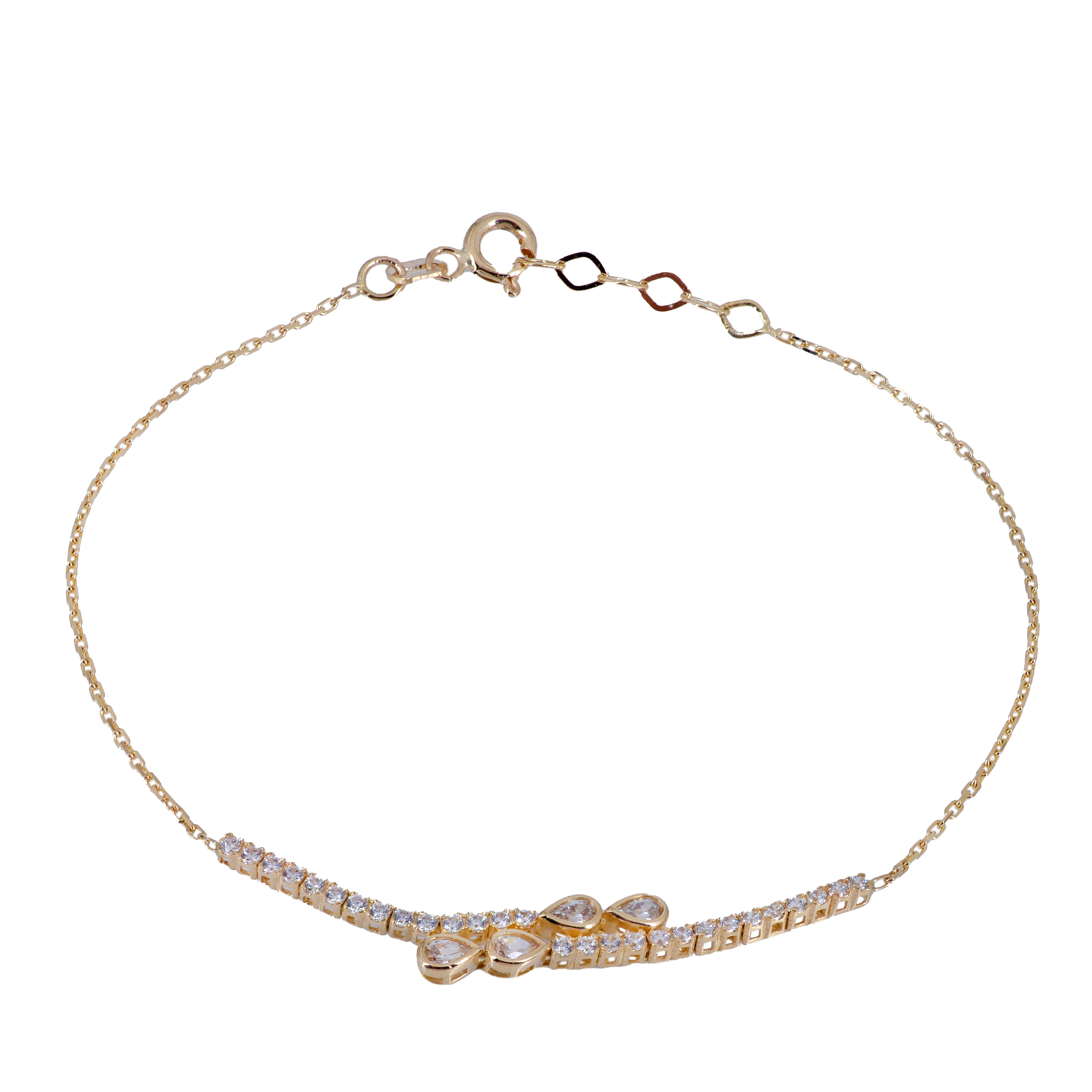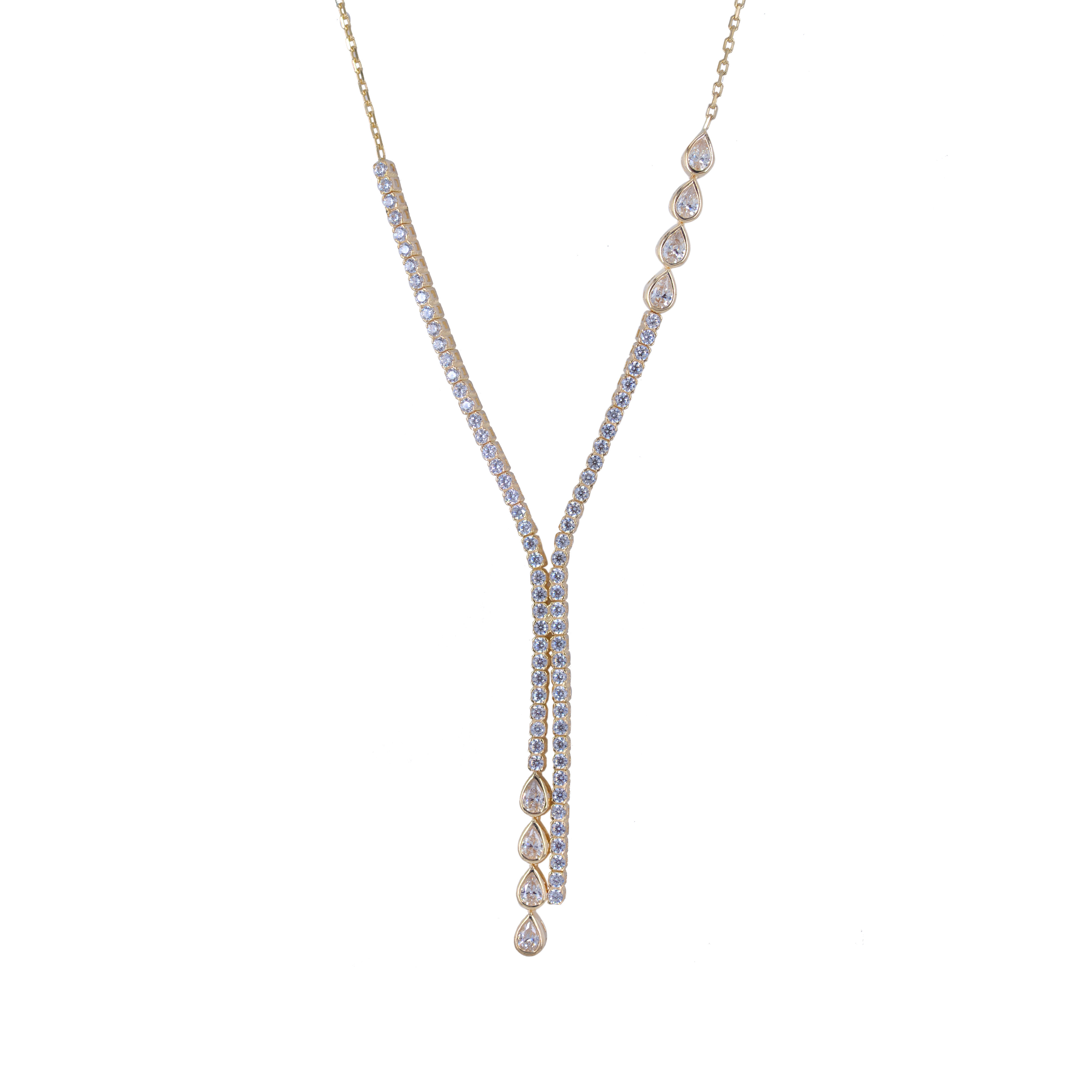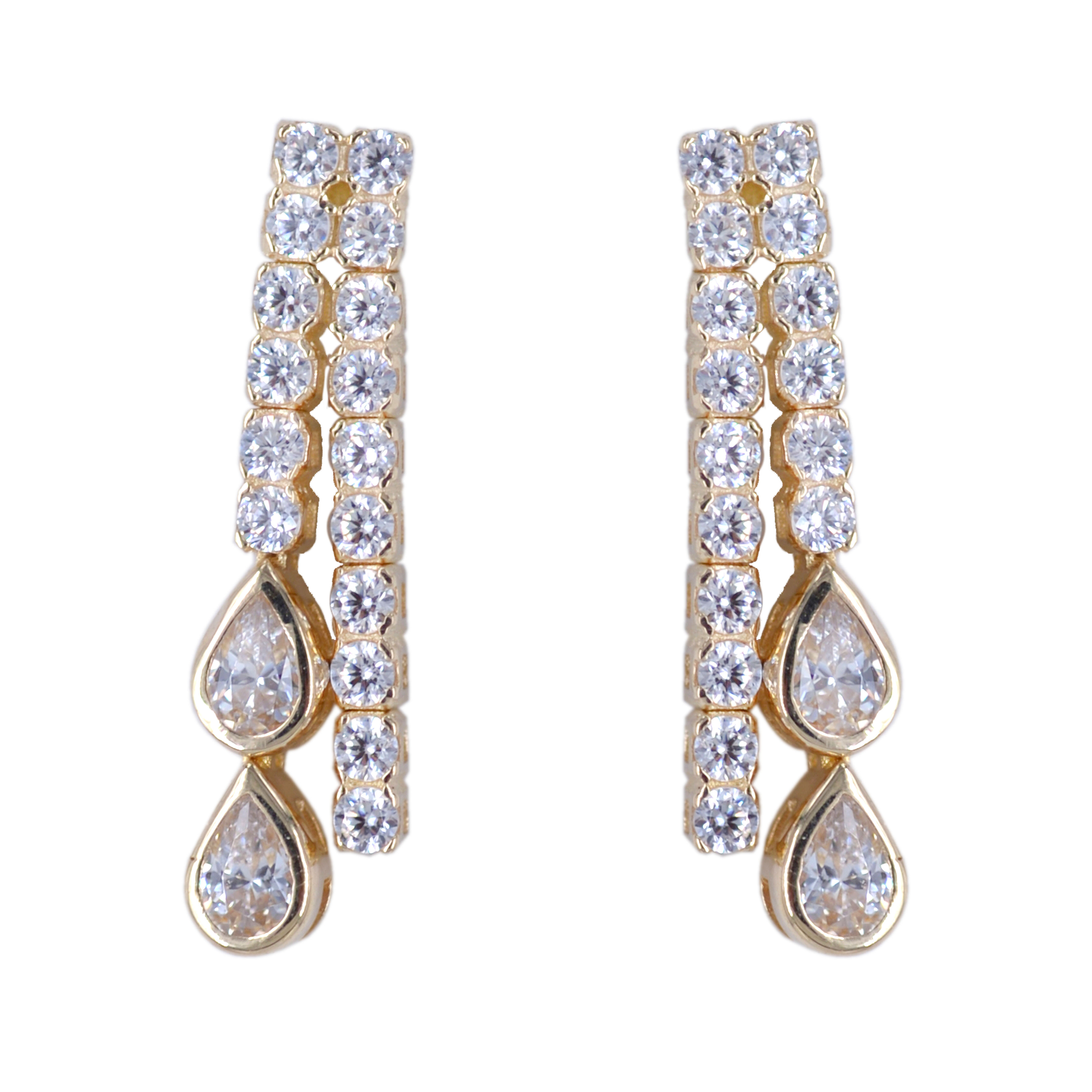 Σετ χρυσό 14 Καρατίων, με ιδιαίτερο μοντέρνο σχέδιο από μονή σειρά με ζιργκόν Swarovski η οποία συνεχίζει με σειρά πετρών ζιργκόν Swarovski σε σχέδιο δάκρυ .