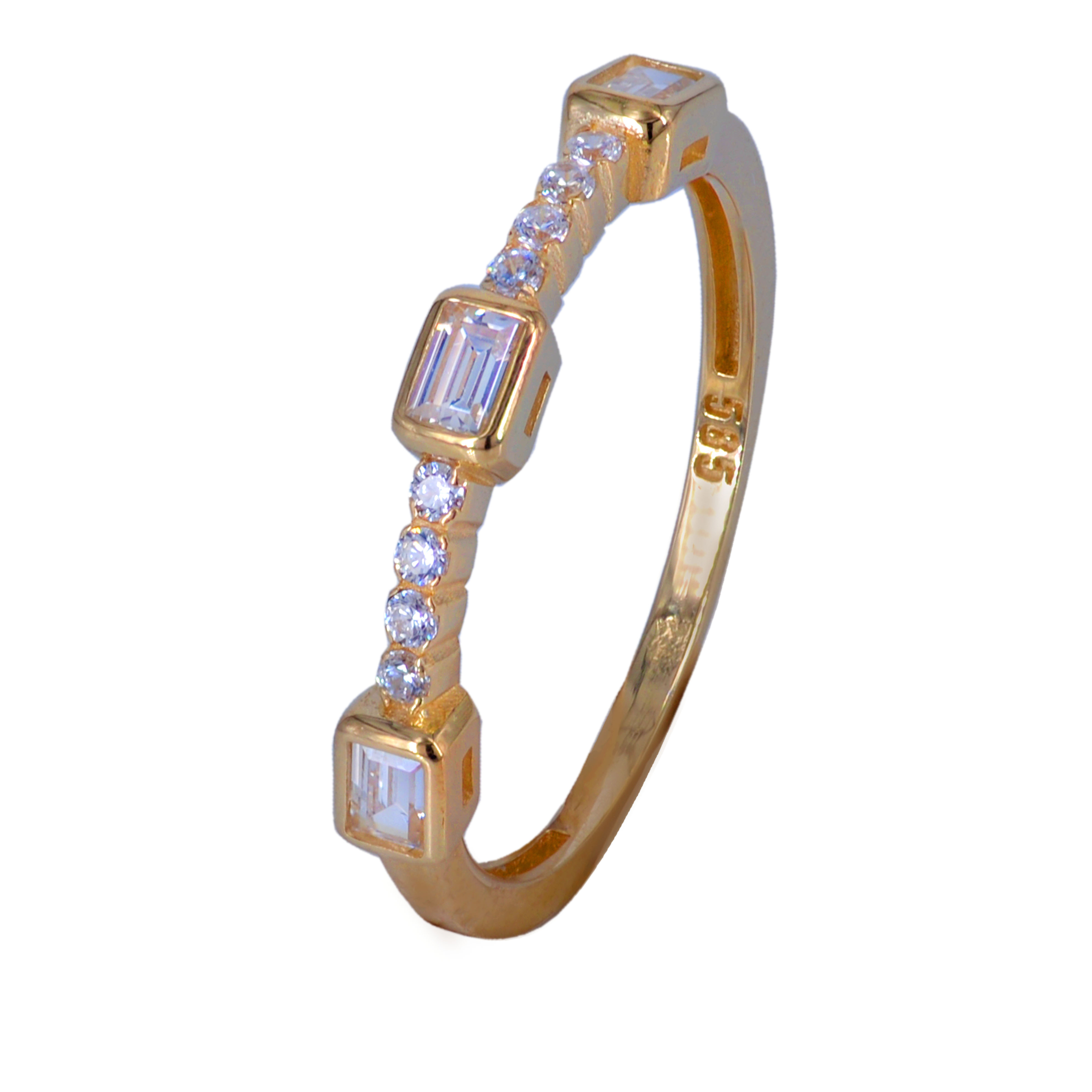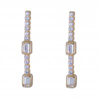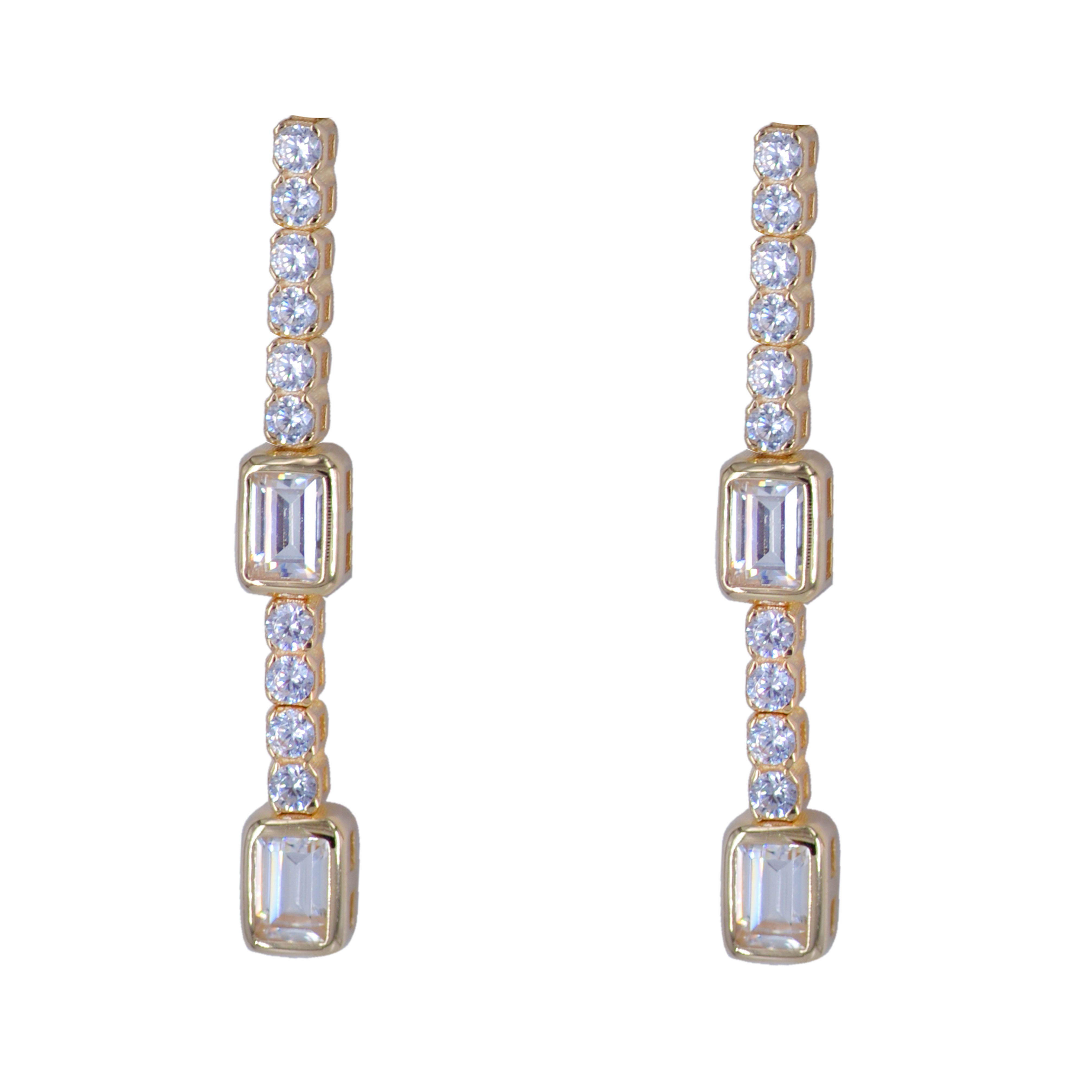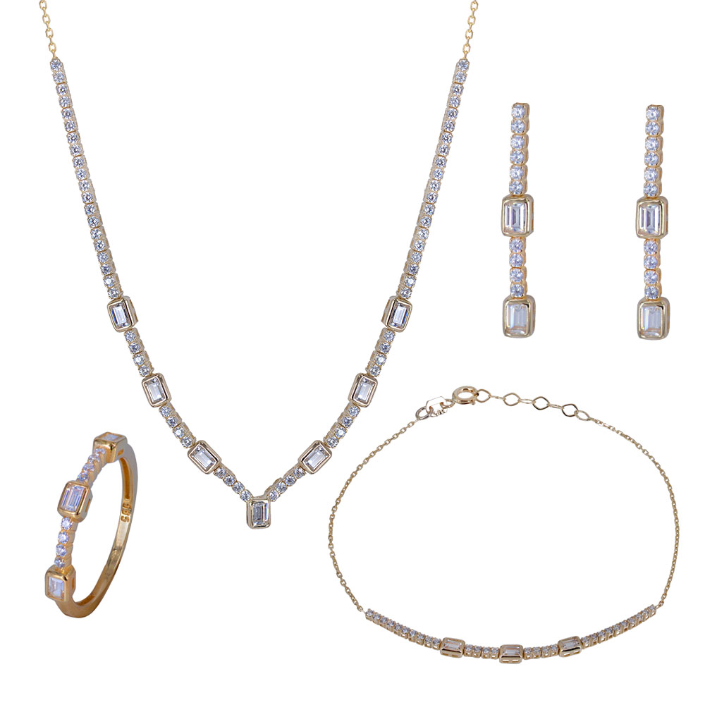 Σετ χρυσό 14 Καρατίων, με ιδιαίτερο μοντέρνο σχέδιο από μονή σειρά με ζιργκόν Swarovski με ενδιάμεσες πέτρες ζιργκόν Swarovski σε ορθογώνιο σχήμα .
