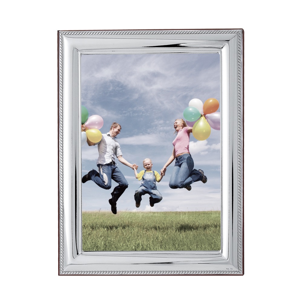 Κορνίζα από ασήμι 925, με σχέδιο κορδόνι και γυαλιστερό φινίρισμα. Η πλάτη είναι ξύλινη σε καφέ χρώμα.